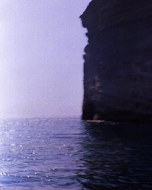 This is a 35mm film photo shot in Santorini Greece, while boating on the Aegean Sea.