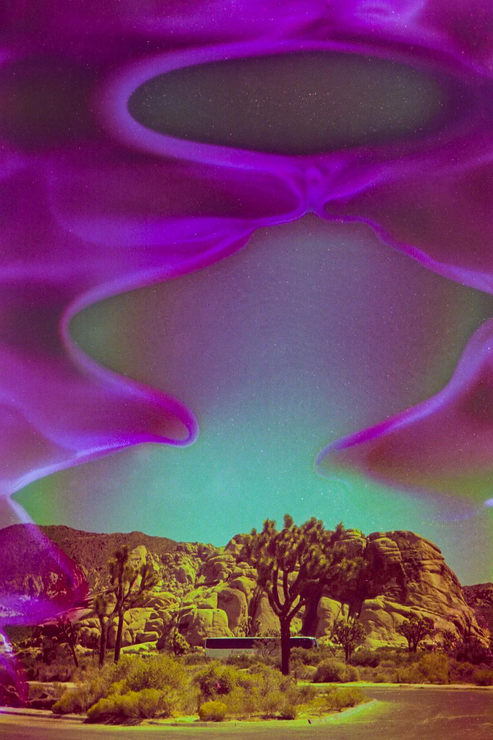 This is a 35mm film photo shot in Joshua Tree National Park. The negatives were taken through a process called film soup where the emulsion is intentionally altered, creating random and sometimes otherworldly effects. I soup my film at home, as well as process and scan by hand.